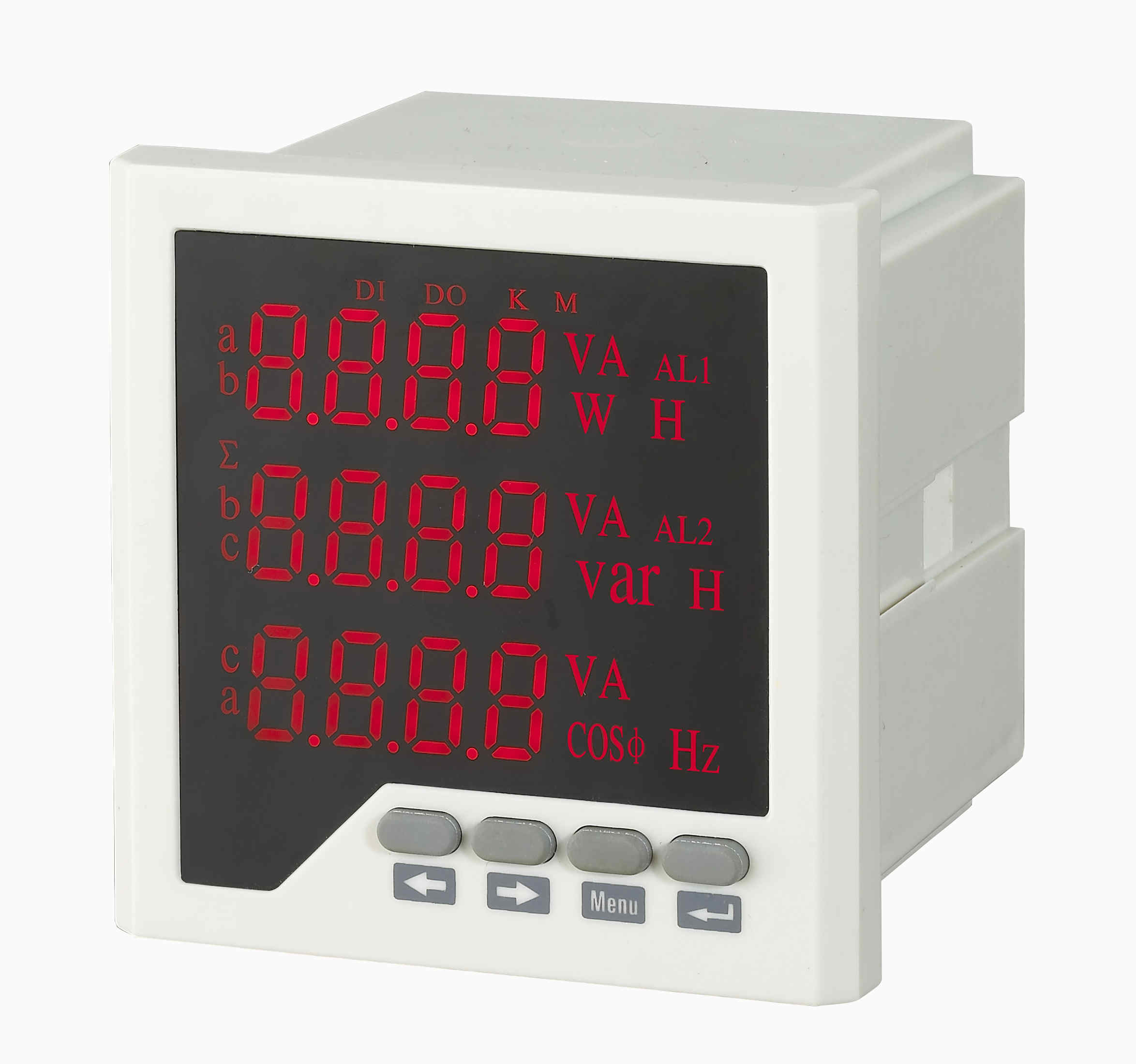 電力儀表,一種具有可編程測量、顯示、RS485數(shù)字通訊和電能脈沖輸出的多功能智能電力儀表,能夠完成三相電參量測量(三相電壓、三相電流、有功功率、無功功率、視在功率、功率因數(shù)、頻率等)、諧波測量、電網(wǎng)質量分析(電壓波峰系數(shù),電流K系數(shù),電話波形因子,電壓電流不平衡度,電壓電流序量等)、四象限電能計量、復費率電能計量、最大需量記錄、SOE事件記錄、數(shù)據(jù)顯示、采集及傳輸,可廣泛應用變電站自動化、配電自動化、智能建筑、企業(yè)內部的電能測量、管理、考核。測量精度0.5級,實現(xiàn)LCD現(xiàn)場顯示和遠程RS-485數(shù)字接口通訊,采用標準MODBUS-RTU通訊協(xié)議。