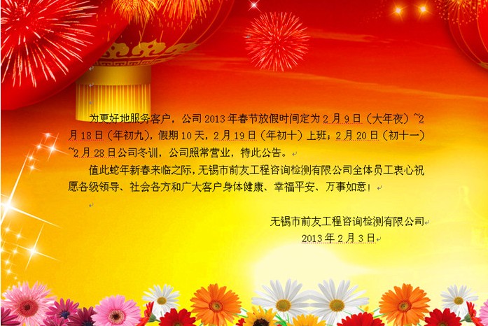 關于2013年春節放假的公告