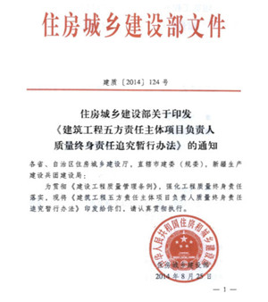 為進一步落實建筑施工項目經理質量安全責任,保證工程質量安全,8月25日,國家住建部頒發了建質[2014]123號文件“住房城鄉建設部關于印發《建筑施工項目經理質量安全責任十項規定(試行)》的通知”。 十項規定中第四項規定:項目經理必須組織對進入現場的建筑材料、構配件、設備、預拌混凝土等進行檢驗,未經檢驗或檢驗不合格,不得使用;必須組織對涉及結構安全的試塊、試件以及有關材料進行取樣檢測,送檢試樣不得弄虛作假,不得篡改或者偽造檢測報告,不得明示或暗示檢測機構出具虛假檢測報告。 附件一“建筑施工項目經理質量安全違法違規行為行政處罰規定”中對應違反第四項規定的行政處罰:(1)未對進入現場的建筑材料、建筑構配件、設備、預拌混凝土等進行檢驗的,對施工單位按照《建設工程質量管理條例》第65條規定實施行政處罰,對項目經理按照《建設工程質量管理條例》第73條規定實施行政處罰;(2)使用不合格的建筑材料、建筑構配件、設備的,對施工單位按照《建設工程質量管理條例》第64條規定實施行政處罰,對項目經理按照《建設工程質量管理條例》第73條規定實施行政處罰;(3)未對涉及結構安全的試塊、試件以及有關材料取樣檢測的,對施工單位按照《建設工程質量管理條例》第65條規定實施行政處罰,對項目經理按照《建設工程質量管理條例》第73條規定實施行政處罰。 附件二“建筑施工項目經理質量安全違法違規行為記分管理規定”中列出,項目經理有下列行為之一的,一次記6分:未按規定組織對涉及結構安全的試塊、試件以及有關材料進行見證取樣的;送檢試樣弄虛作假的;篡改或者偽造檢測報告的;明示或暗示檢測機構出具虛假檢測報告的。 住建部同日還頒發了“住房城鄉建設部關于印發《建筑工程五方責任主體項目負責人質量終身責任追究暫行辦法》的通知”。建筑工程五方責任主體是指承擔建筑工程項目建設的建設單位項目負責人、勘察單位項目負責人、設計單位項目負責人、施工單位項目經理、監理單位總監理工程師。