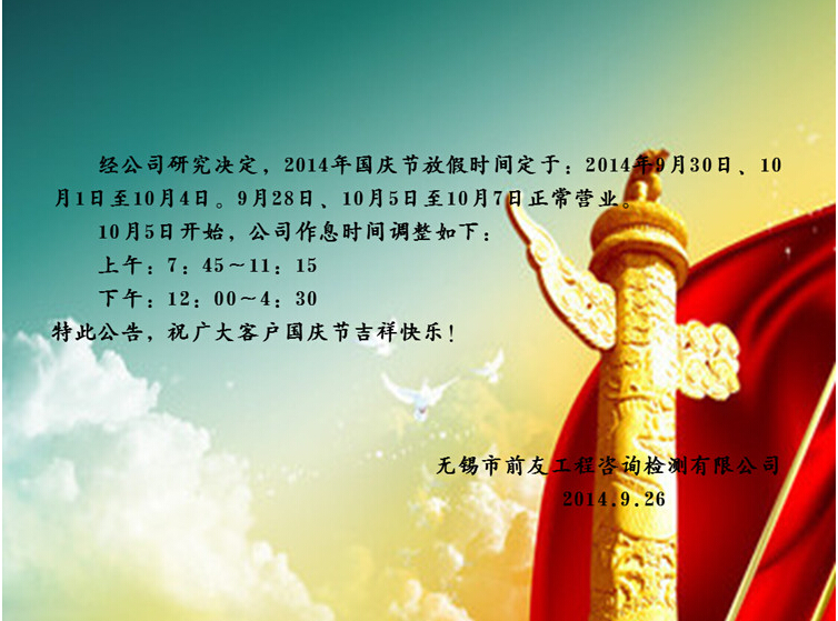 關于國慶節放假及節后營業時間調整的公告