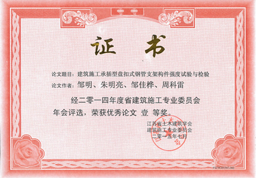 據悉,江蘇省土木建筑學會建筑施工專業委員會第九屆二次會議暨2014年度建筑施工學術交流會于7月24日至26日在鎮江召開。會議組織了學術交流。論文主題為:建筑結構施工新技術;地基基礎施工新技術;模板腳手架施工新技術;綠色環保及節能新技術;裝飾裝修新技術;現代施工管理及質量安全檢測等。 會上,組織評審了2014年度江蘇省優秀施工學術論文并頒獎,無錫市前友工程咨詢檢測有限公司二篇論文分獲省優秀論文一等獎、三等獎。