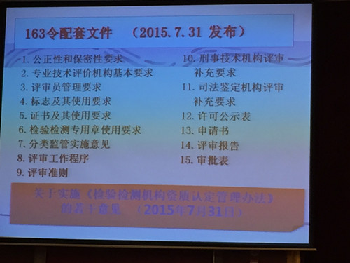 為貫徹落實認監(jiān)委《關于實施<檢驗檢測資質(zhì)認定管理辦法>的若干意見》文件精神,規(guī)范檢驗檢測機構(gòu)資質(zhì)認定工作,9月17日無錫市質(zhì)量技術監(jiān)督局開展檢驗檢測機構(gòu)資質(zhì)認定管理辦法等相關法律法規(guī)宣貫培訓。各市(縣)、區(qū)市場監(jiān)督局認證認可監(jiān)管人員和全市各行業(yè)172家資質(zhì)認定獲證檢驗檢測機構(gòu)負責人、質(zhì)量負責人參加了培訓,公司總經(jīng)理鄒明、質(zhì)量負責人朱文英全程參加了活動。 宣貫培訓由市質(zhì)監(jiān)局王武處長主持,天津市疾控中心郝琳高級工程師主講。內(nèi)容包括1)163號令要點解讀;2)新評審準則變化點;3)過渡期的做法;4)專項監(jiān)督關注點。 此次宣貫培訓,主管部門重視,主講老師備課充分、信息量大,參會人員認真聽講,收獲頗豐,活動取得了成功。