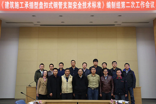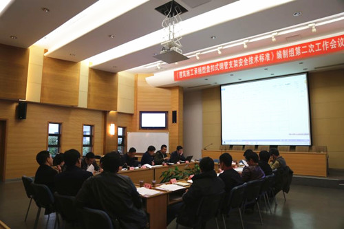 11月22日,工程建設行業標準《建筑施工承插型盤扣式鋼管支架安全技術規程》(JGJ231-2010)修編編制組第二次工作會議在無錫召開,來自全國的行標編制組人員參加了會議。 會議由東南大學郭正興教授主持,編制組逐條討論修編內容,并分析修改需要進行的實驗等支撐依據,對修編內容進行了工作任務分配。會議期間,參會的專家學者參觀了無錫速捷腳手架工程有限公司生產工藝、觀摩了無錫市前友工程咨詢檢測有限公司檢測實驗。 近年來,承插型盤扣架產品品質和應用技術已趨成熟,其支架具有的施工安全可靠度高、承載力大、搭拆方便、施工工期短、現場文明美觀等優點已被行業所認同,并成為高大支模的首選。今年,無錫地鐵3號線、地鐵1號線延伸段和阿里巴巴菜鳥物流等工程已大量使用承插型盤扣式鋼管支架。