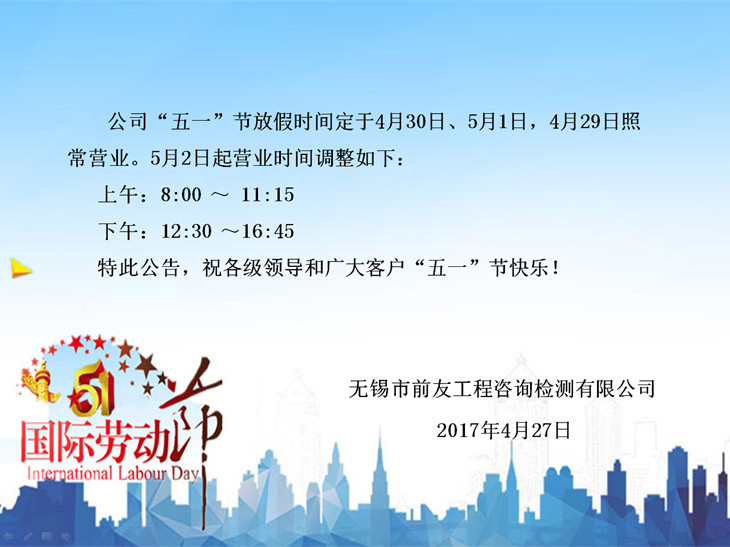 | 關(guān)于“五一”節(jié)放假及節(jié)后營業(yè)時間調(diào)整的公告 | ||