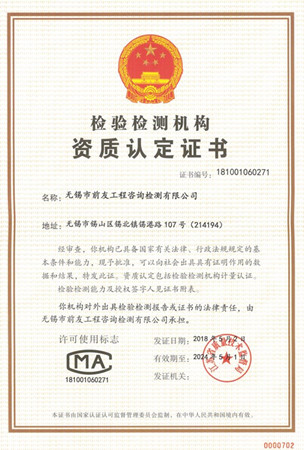 近日,江蘇省質量技術監督局行政服務窗口寄來《檢驗檢測機構資質認定證書》,至此,公司新一輪資質延續擴項工作已圓滿完成。 經過十二年的發展,前友公司現已具有八大類88小類509項檢測參數,涵蓋建設工程建筑材料、工程實體質量檢測、工程安全類構件檢測、房屋安全鑒定檢測和工程測量等。