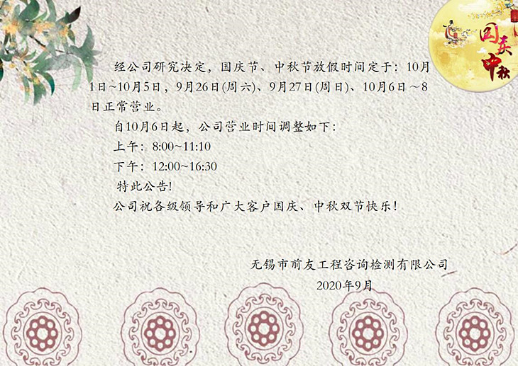 | 關于國慶、中秋放假及節(jié)后營業(yè)時間調整的公告 | ||