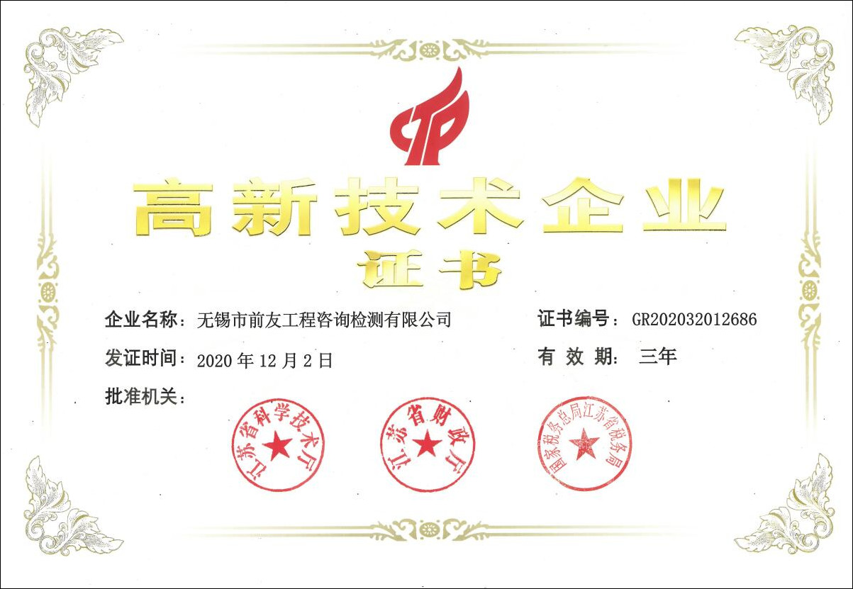 2021年1月22日,全國高新技術企業認定管理工作領導小組辦公室發文“關于江蘇省2020年高新技術企業備案的復函”,公司成功入圍。 近日,公司領回了江蘇省科學技術廳、江蘇省財政廳和國家稅務總局江蘇稅務局聯合頒發的高新技術企業證書。
