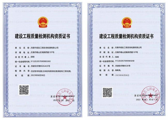 近日,江蘇省住房和城鄉建設廳網站公布了工程檢測企業資質核準結果的公告。無錫市前友工程咨詢檢測有限公司獲準資質延續,已取得嶄新的《建設工程質量檢測機構資質證書》。據此,公司資質延續工作已順利完成。 公司成立十六年來,資質能力不斷提高。公司的業務服務范圍已拓展到建筑工程材料檢測、工程實體質量檢測、工程安全類構件檢測、裝配式結構檢測、工程測量、房屋安全鑒定。公司成長為國家高新技術企業,并獲中國建筑業協會AAA級信用企業(檢測機構)。 檢測資質的順利延續,為公司高品質發展奠定了基礎。公司將不忘初心,虔誠為政府、客戶和社會提供更優質、更全面的咨詢檢測服務。