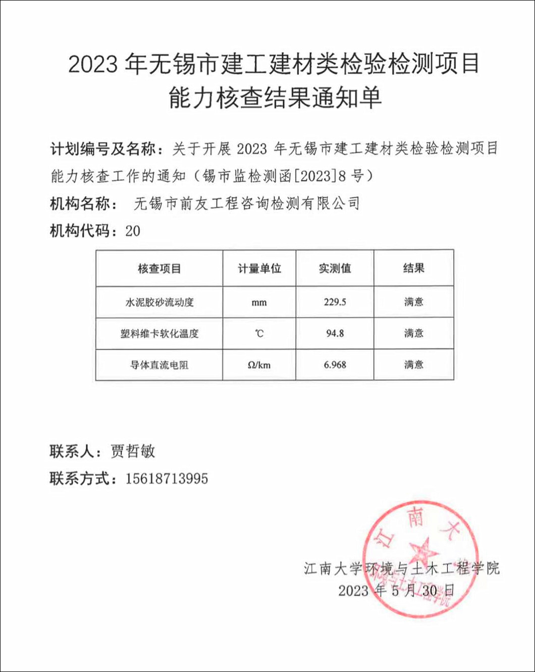 為加強(qiáng)對我市資質(zhì)認(rèn)定檢驗(yàn)檢測機(jī)構(gòu)的事中事后監(jiān)管,提升檢驗(yàn)檢測機(jī)構(gòu)技術(shù)能力水平,根據(jù)《檢驗(yàn)檢測機(jī)構(gòu)監(jiān)督管理辦法》第十八條并結(jié)合我市實(shí)際,無錫市市場監(jiān)督管理局于5月份在全市資質(zhì)認(rèn)定檢驗(yàn)檢測機(jī)構(gòu)中開展水泥膠砂流動(dòng)度、塑料維卡軟化溫度、電線電纜導(dǎo)體直流電阻等參數(shù)的檢測能力核查工作。 本次能力核查工作委托江南大學(xué)為技術(shù)支持單位,負(fù)責(zé)能力核查作業(yè)指導(dǎo)書制定、樣品準(zhǔn)備、結(jié)果匯總、統(tǒng)計(jì)分析等工作。 水泥膠砂流動(dòng)度、塑料維卡軟化溫度參數(shù)測定結(jié)果采用Z比分?jǐn)?shù)進(jìn)行判定。|Z|≤2,判定為滿意值,說明機(jī)構(gòu)目前的檢測能力狀況良好;2<|Z|<3,判定為可疑值,說明機(jī)構(gòu)目前的檢測能力狀況存在一定問題;|Z|≥3,判定為不滿意值或離群值,說明機(jī)構(gòu)目前的檢測能力狀況不理想,存在較大問題。電線電纜導(dǎo)體直流電阻按照與標(biāo)準(zhǔn)物質(zhì)證書指定值進(jìn)行比對,在證書規(guī)定的允許誤差范圍內(nèi)為滿意結(jié)果,不在證書規(guī)定的允許誤差范圍內(nèi)為不滿意結(jié)果。本次能力核查中,無錫市前友工程咨詢檢測有限公司獲得滿意結(jié)果。