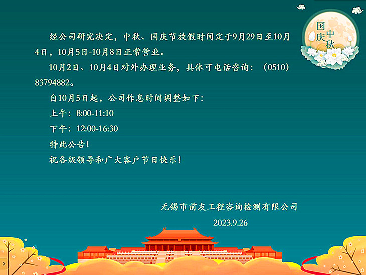 關于中秋、國慶放假及節后營業時間調整的公告