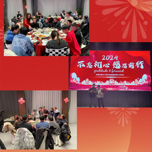 玉兔辭舊歲,龍騰賀新春。2月6日,伴隨著春天的腳步,在歡快的樂曲聲中,無錫市前友工程咨詢檢測有限公司2024新春茶話會(huì)拉開序幕,前友大家庭歡聚一堂,敘情誼,話未來,迎龍年。 茶話會(huì)上,公司總經(jīng)理為大家送上了新春祝福,并結(jié)合當(dāng)前市場形勢(shì)總結(jié)2023,展望2024,感謝每一位員工為公司發(fā)展付出的辛勤和努力。隨后,大家庭的其它成員紛紛積極踴躍發(fā)言,分享一年來的所感、所想、所悟,感恩一路走來大家一起奮斗、一同成長,互致同事身體健康、闔家幸福、龍行龘龘、前程?hào)T朤,共祝公司龍?bào)J闊躍啟新歲,凝勢(shì)踞彰續(xù)輝煌。會(huì)議期間,傳來喜訊,公司領(lǐng)回了國家高新技術(shù)企業(yè)證書。 接下來,是前友一家人的年夜飯時(shí)光。紅包與彩票大獎(jiǎng)將花落誰家?誰又會(huì)是今年的幸運(yùn)錦鯉?隨著公司領(lǐng)導(dǎo)新年紅包的發(fā)出,一輪又一輪的搶紅包將年夜飯的歡樂氣氛推向高潮。搶紅包、刮彩票,在這寒冷的夜晚,公司為每一位家人送上了一頓熱氣騰騰又激動(dòng)人心的年夜飯。 甜甜的笑容,深深的祝福,讓我們的笑容充滿著青春的驕傲,讓我們期待明天會(huì)更好!在員工們慷慨激昂的歌聲中,此次活動(dòng)圓滿結(jié)束。