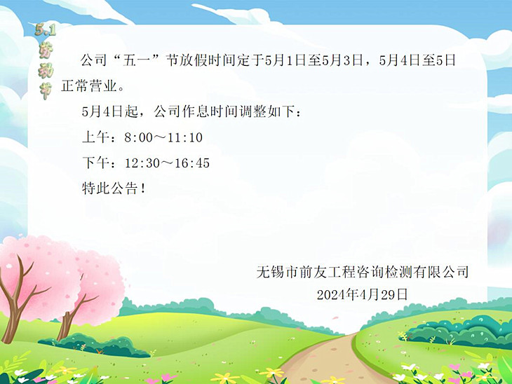 “五一”勞動節放假及節后營業時間調整的公告