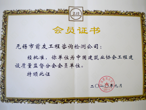 | 賀前友檢測公司吸收為中建協(xié)質量監(jiān)督分會會員 | ||